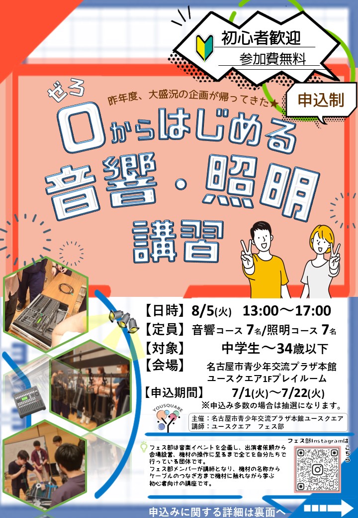 【申込制】ユースク フェス部による『0からはじめる音響・照明講習』🔰🐣