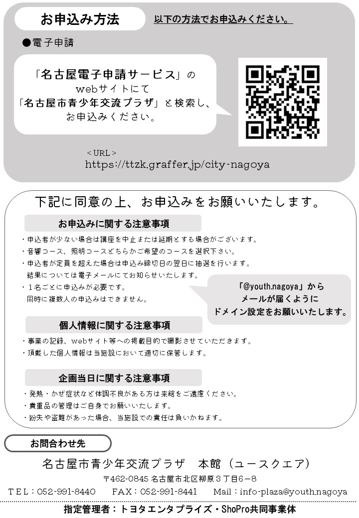 📌お申込みの際に、「音響コース」か「照明コース」か興味のあるものを選んでくださいね~