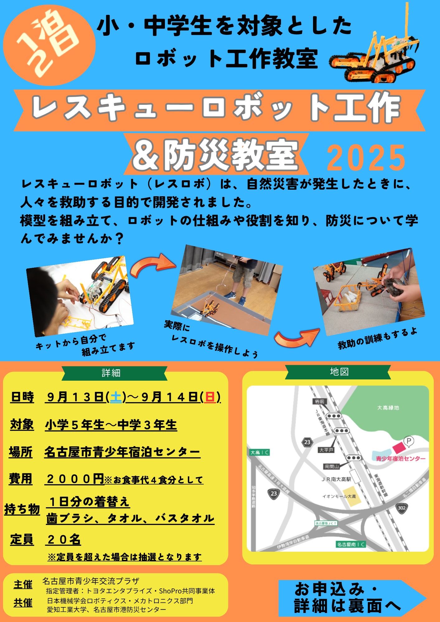 【開催告知】1泊2日レスキューロボット工作&防災教室2025