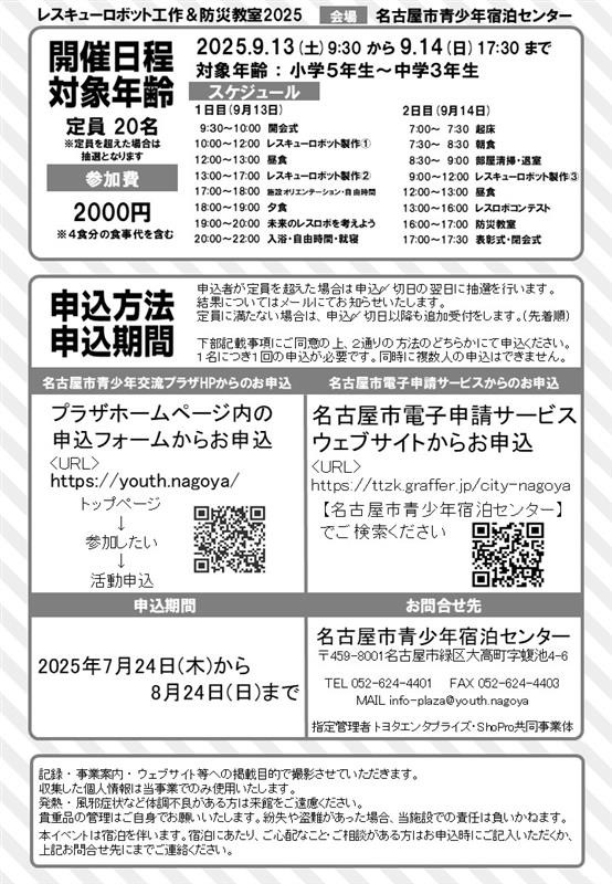 ⚠️1泊2日で防災やレスキューロボットについて&防災について学べるイベントを名古屋市青少年宿泊センターで開催します⚠️