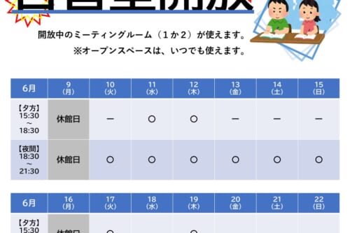 ・小学校夏期休業中の月曜日は、8月第1月曜日のみ休館