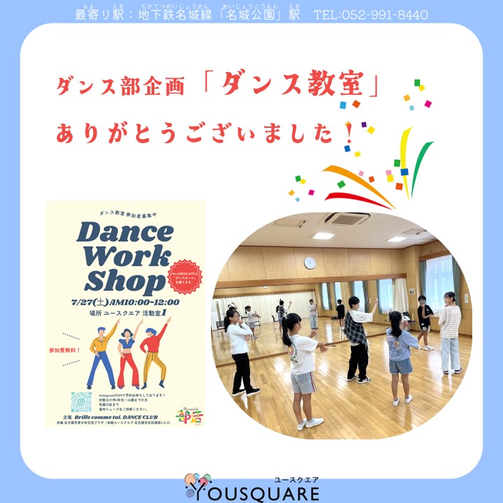 ダンス部はじめての試みでしたが、参加者の皆さんが楽しくダンスする姿がいっぱいのとても良いイベントでした!