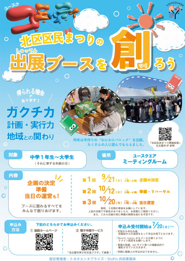 10/20(日)に行われる北区区民まつりにユースクエアも参加することが決定!