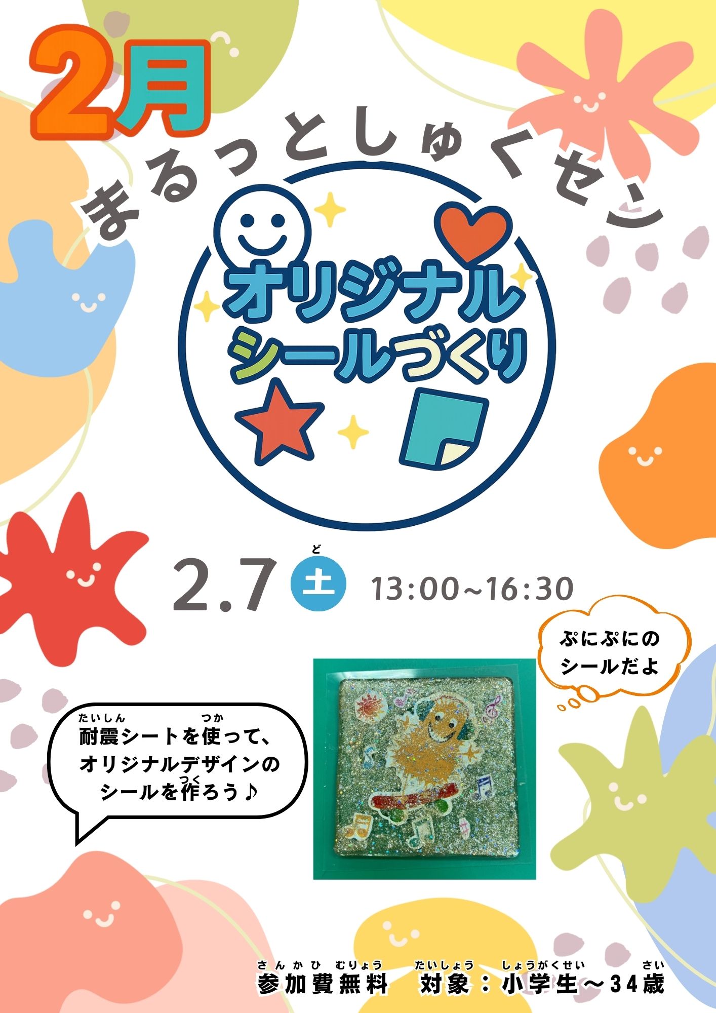 2月7日13:00~16:30の間に名古屋市青少年宿泊センターに来てくれたら、シールが作れる👏👏