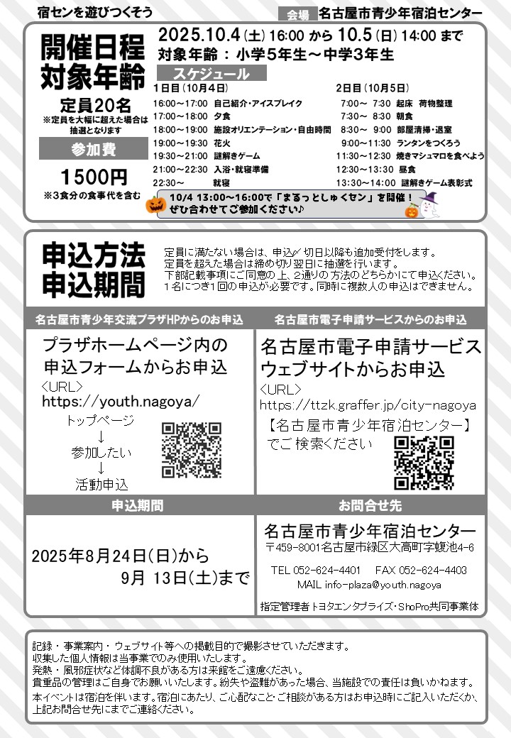 【📍会 場】名古屋市青少年宿泊センター