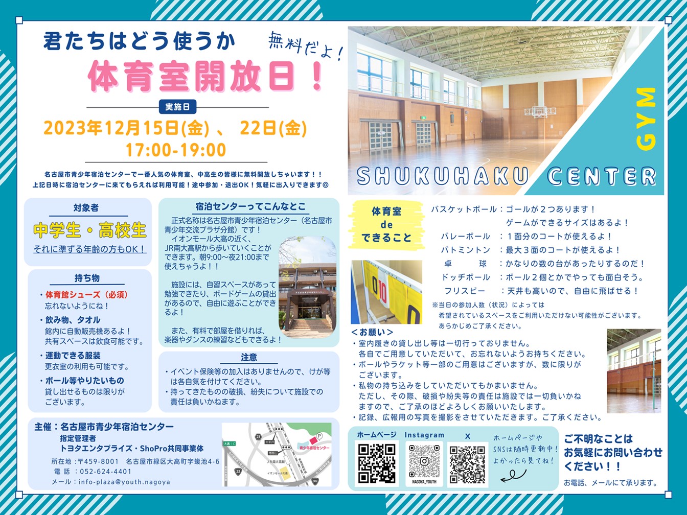 中高生限定!体育室無料開放!🏀