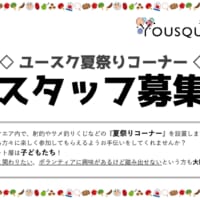 幼児~小学低学年へ楽しい遊びを提供するユースクエアのブースを出展します。 それに際し、一緒に手伝ってくれる仲間を募集します! 申込開始は8月10日(木)~ 下の申込フォームからお申込み下さい♪