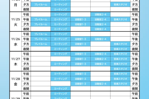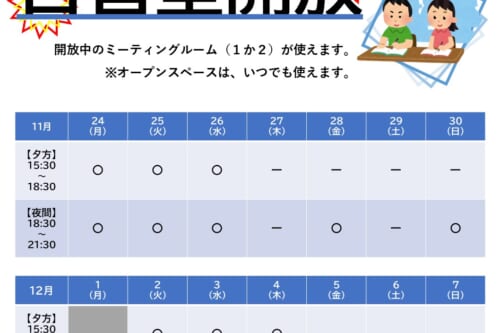 ユースクエア11/24~12/7の自習室スケジュール