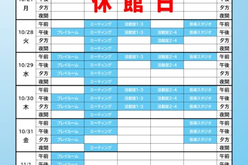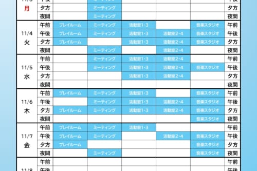ユースクエア10/27~11/9の自習室スケジュール